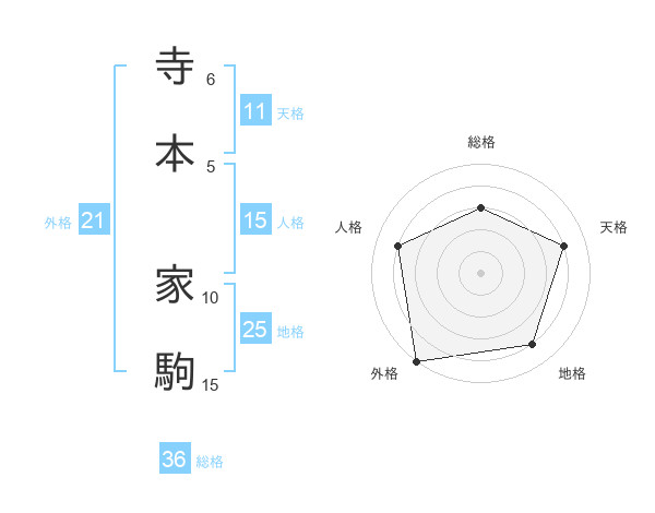寺本 家駒さんの外格は21画の5点!