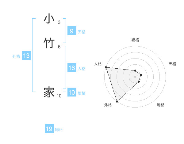 小竹 家さんの外格は13画の5点!