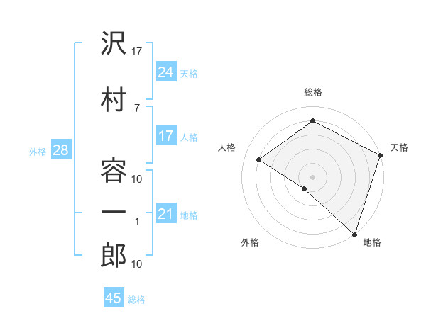 沢村 容一郎さんの天格は24画の5点!