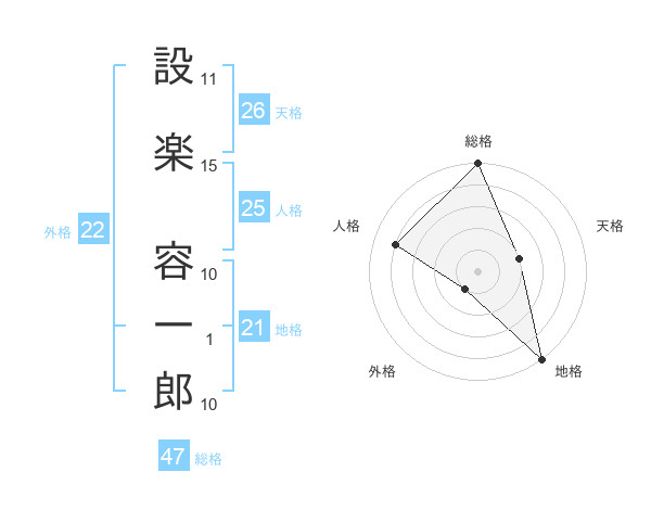 設楽 容一郎さんを姓名の画数から五運を鑑定