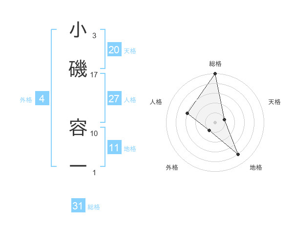 小磯 容一さんの総格は31画の5点!
