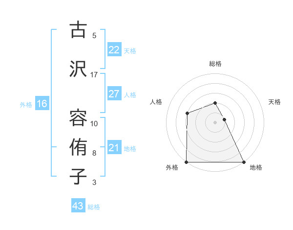 古沢 容侑子さんを姓名の画数から五運を鑑定