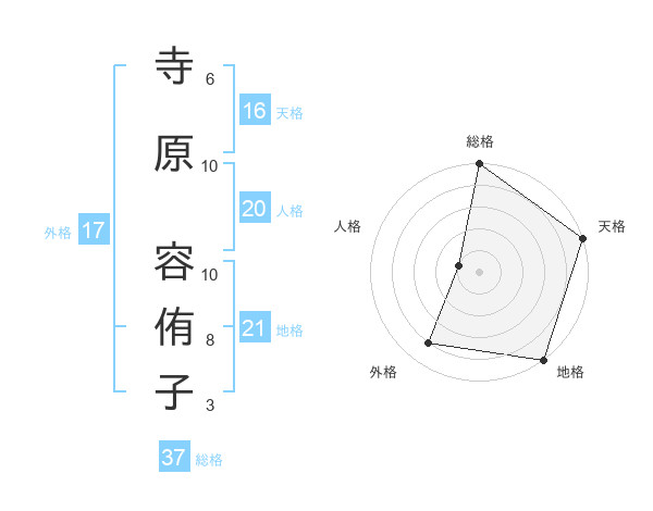 寺原 容侑子さんの総格は37画の5点!