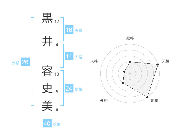 黒井 容史美さんを姓名の画数から五運を鑑定