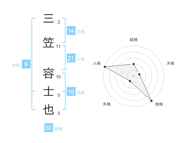 三笠 容士也さんを姓名の画数から五運を鑑定