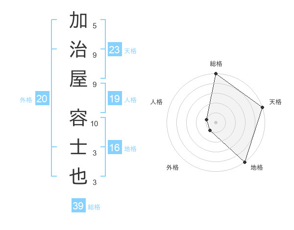 加治屋 容士也さんを姓名の画数から五運を鑑定