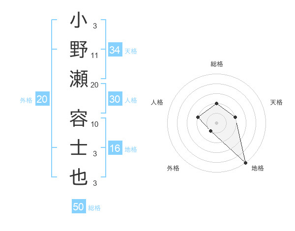 小野瀬 容士也さんを姓名の画数から五運を鑑定