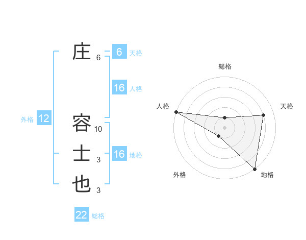 庄 容士也さんの総格は22画の1点!
