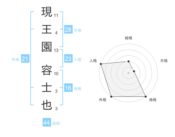 現王園 容士也さんを姓名の画数から五運を鑑定