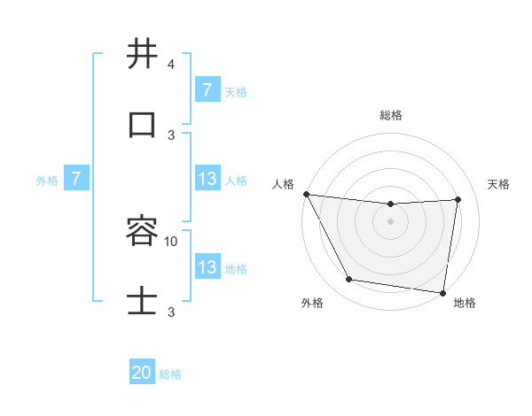 井口 容士さんの総格は20画の1点!