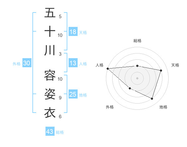五十川 容姿衣さんの天格は18画の4点!