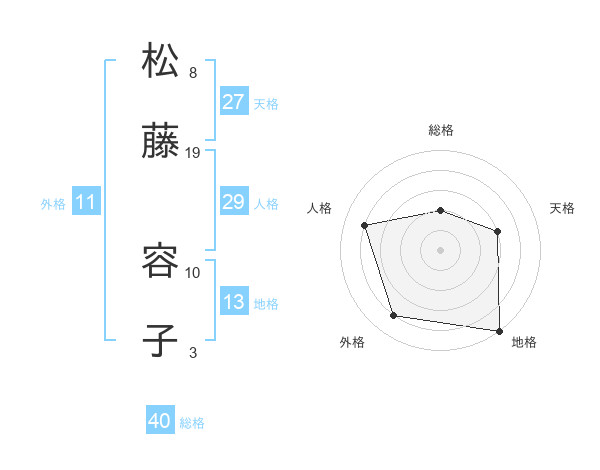 松藤 容子さんの地格は13画の5点!