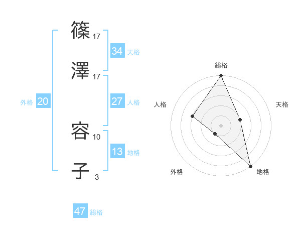 篠澤 容子さんを姓名の画数から五運を鑑定