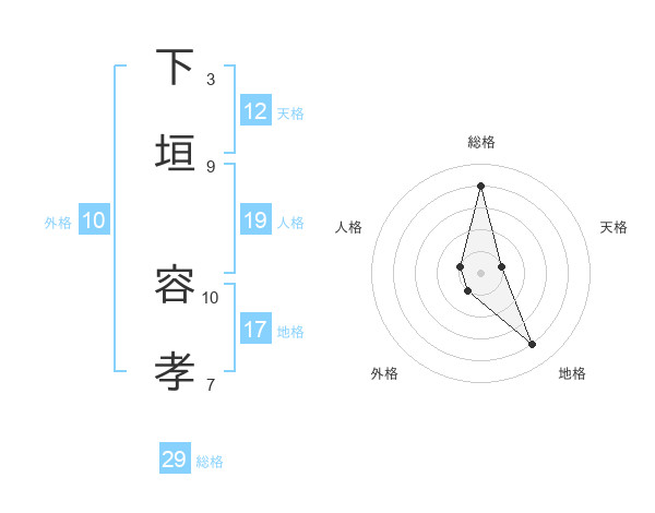 下垣 容孝さんを姓名の画数から五運を鑑定