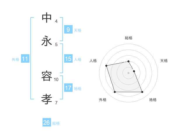 中永 容孝さんの総格は26画の2点!