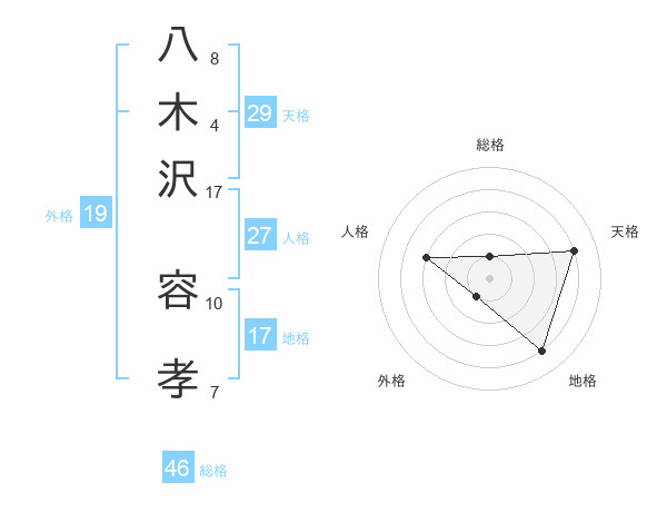八木沢 容孝さんの地格は17画の4点!