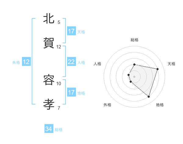 北賀 容孝さんの天格は17画の4点!
