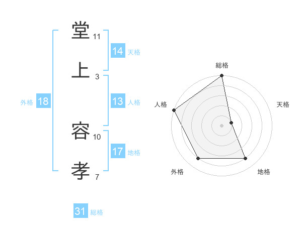 堂上 容孝さんの総格は31画の5点!