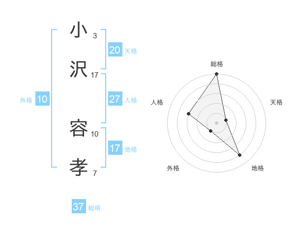 小沢 容孝さんの総格は37画の5点!