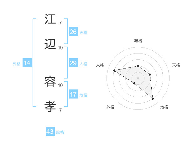 江辺 容孝さんを姓名の画数から五運を鑑定