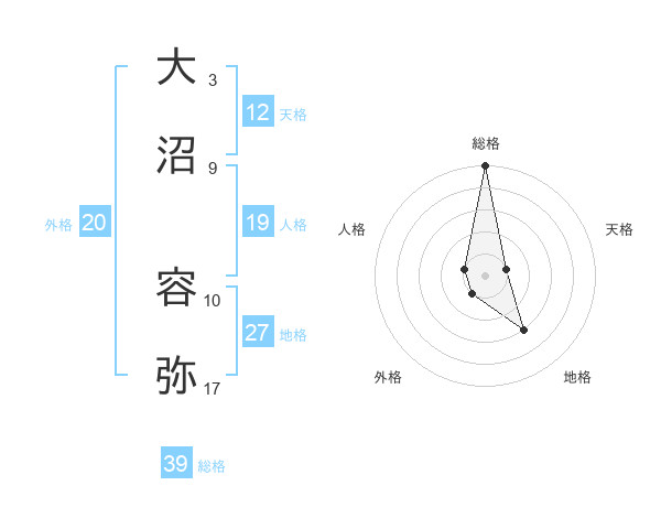大沼 容弥さんを姓名の画数から五運を鑑定