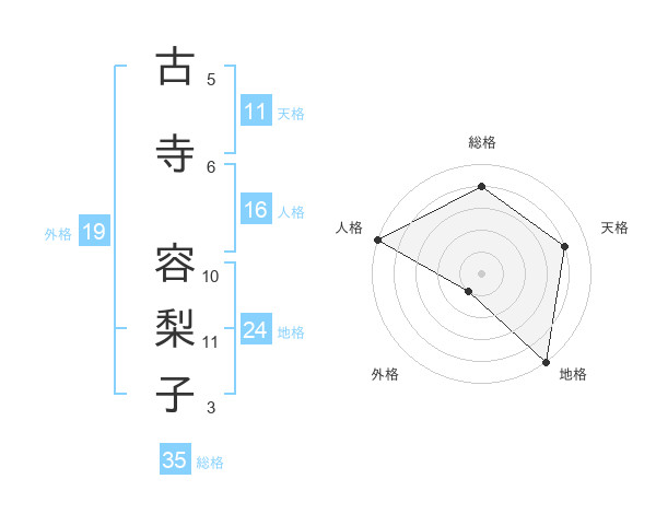 古寺 容梨子さんを姓名の画数から五運を鑑定