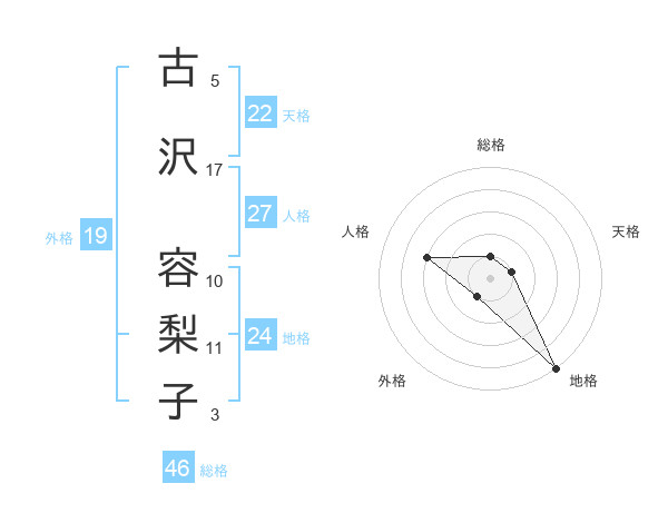 古沢 容梨子さんを姓名の画数から五運を鑑定