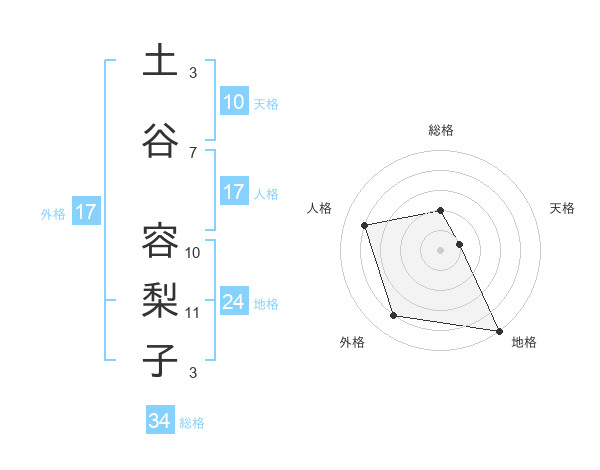 土谷 容梨子さんを姓名の画数から五運を鑑定