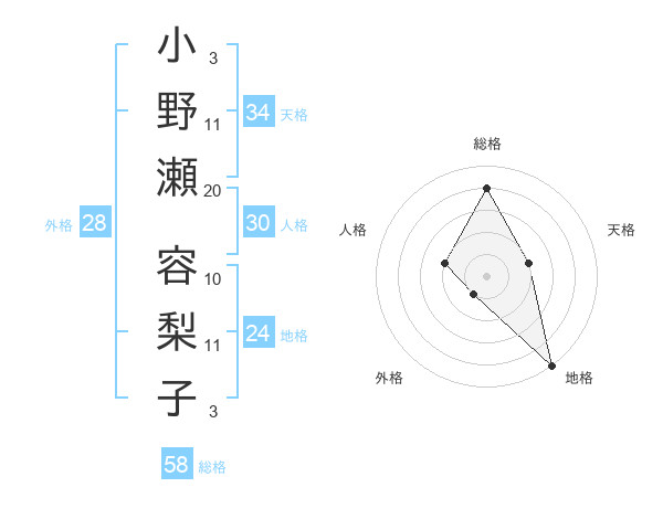 小野瀬 容梨子さんを姓名の画数から五運を鑑定