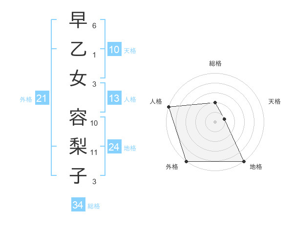 早乙女 容梨子さんの総格は34画の2点