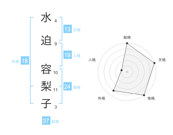 水迫 容梨子さんの総格は37画の5点!