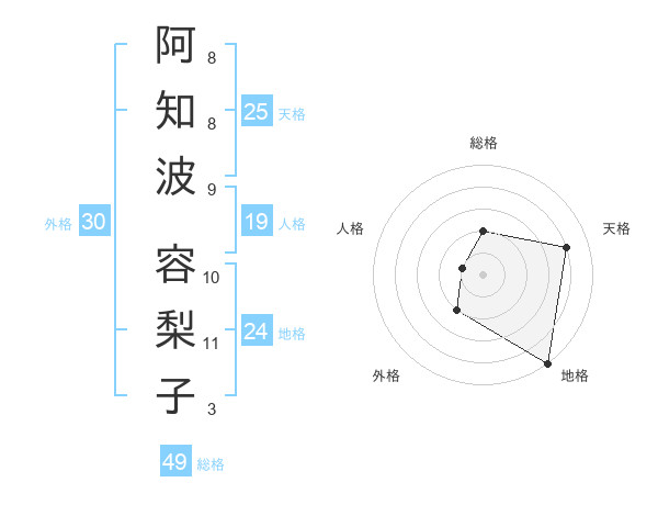 阿知波 容梨子さんを姓名の画数から五運を鑑定