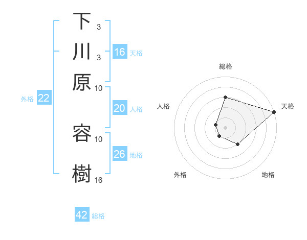 下川原 容樹さんを姓名の画数から五運を鑑定