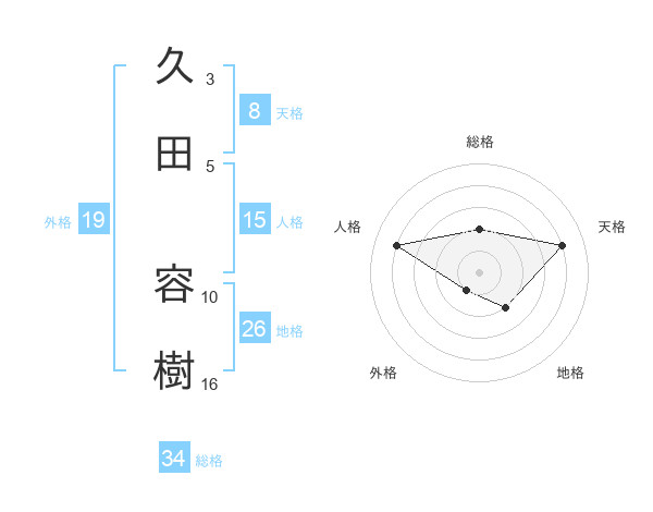 久田 容樹さんの総格は34画の2点!