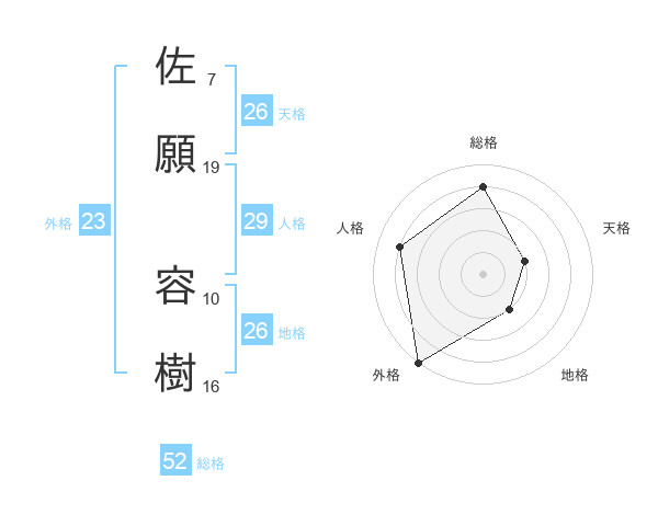 佐願 容樹さんを姓名の画数から五運を鑑定