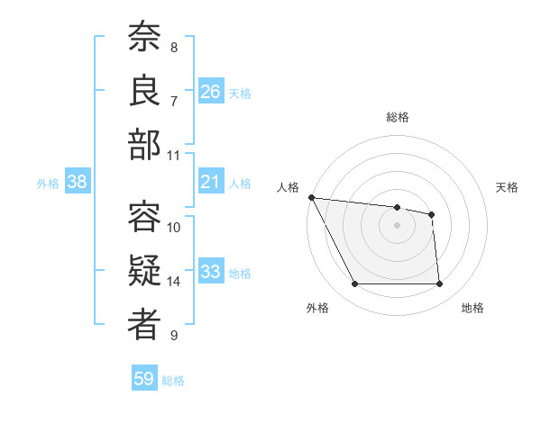 奈良部 容疑者さんの総格は59画の1点!