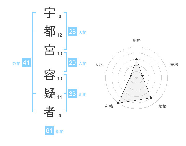 宇都宮 容疑者さんを姓名の画数から五運を鑑定
