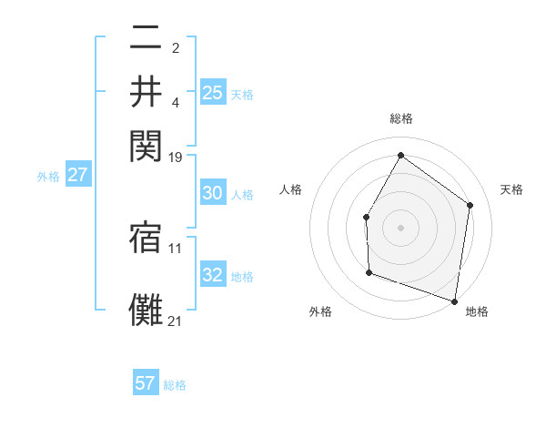 二井関 宿儺さんの総格は57画の4点!
