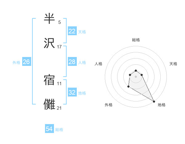 半沢 宿儺さんを姓名の画数から五運を鑑定