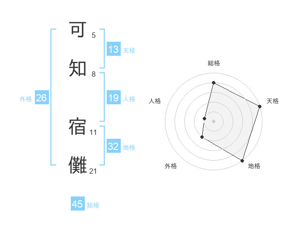 可知 宿儺さんの天格は13画の5点!
