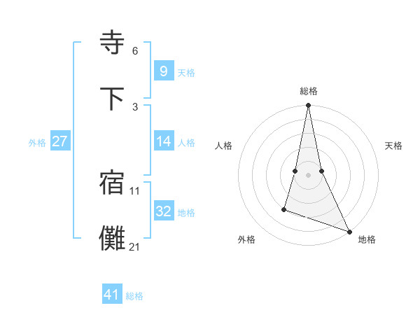 寺下 宿儺さんの総格は41画の5点!