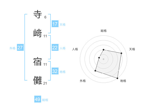 寺﨑 宿儺さんの天格は17画の4点!