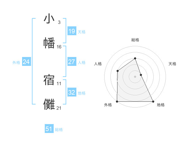 小幡 宿儺さんの総格は51画の3点!
