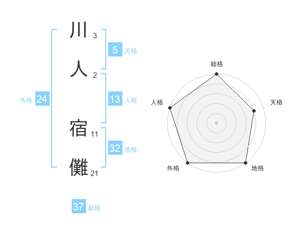 川人 宿儺さんの外格は24画の5点!