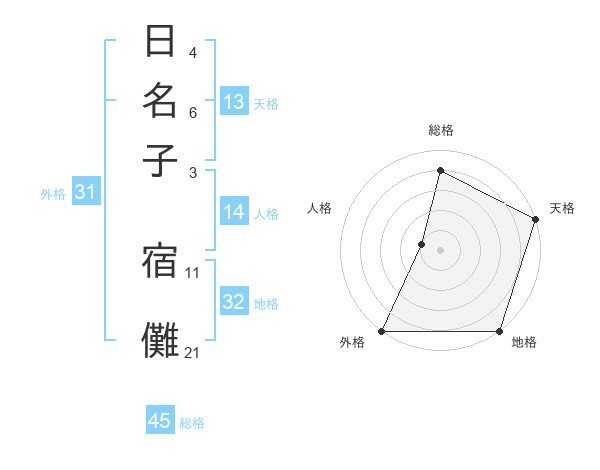 日名子 宿儺さんの総格は45画の4点!