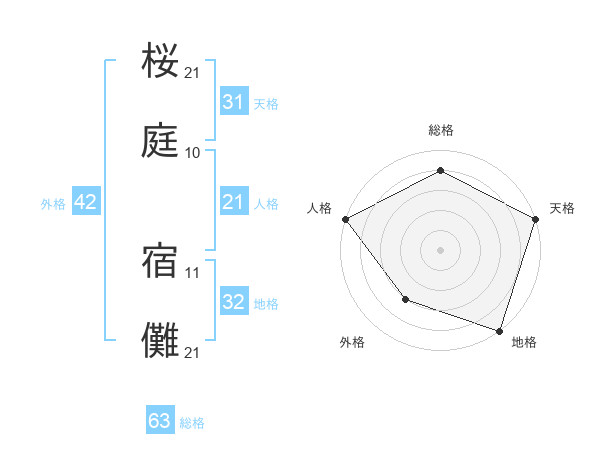 桜庭 宿儺さんを姓名の画数から五運を鑑定