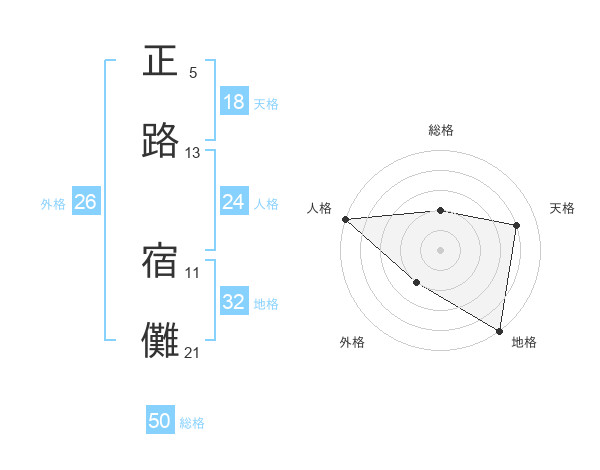 正路 宿儺さんの総格は50画の2点!