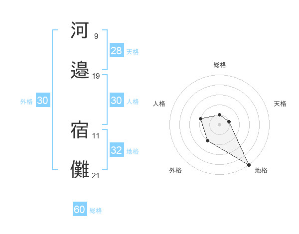 河邉 宿儺さんを姓名の画数から五運を鑑定
