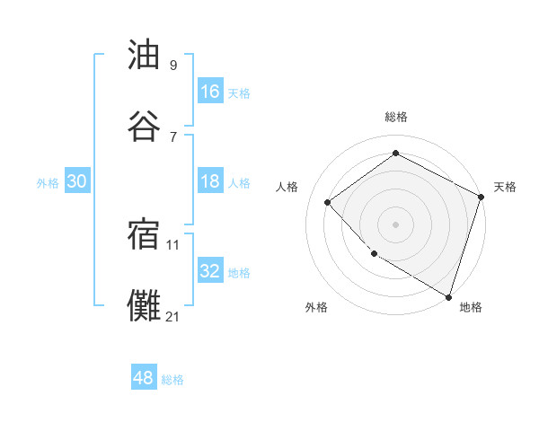 油谷 宿儺さんの総格は48画の4点!