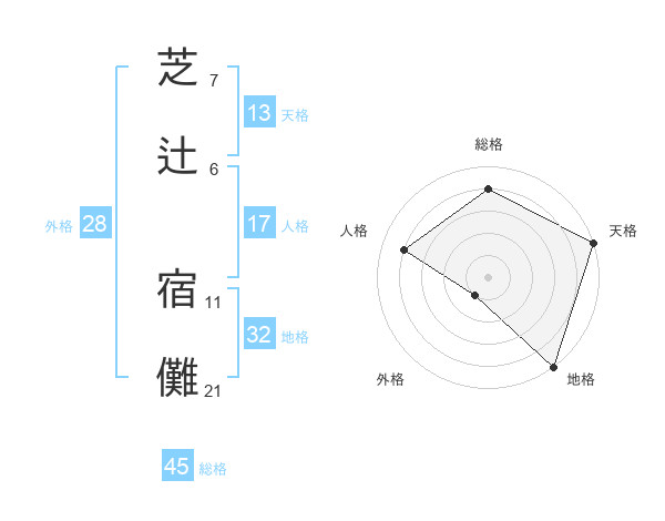 芝辻 宿儺さんの総格は45画の4点!